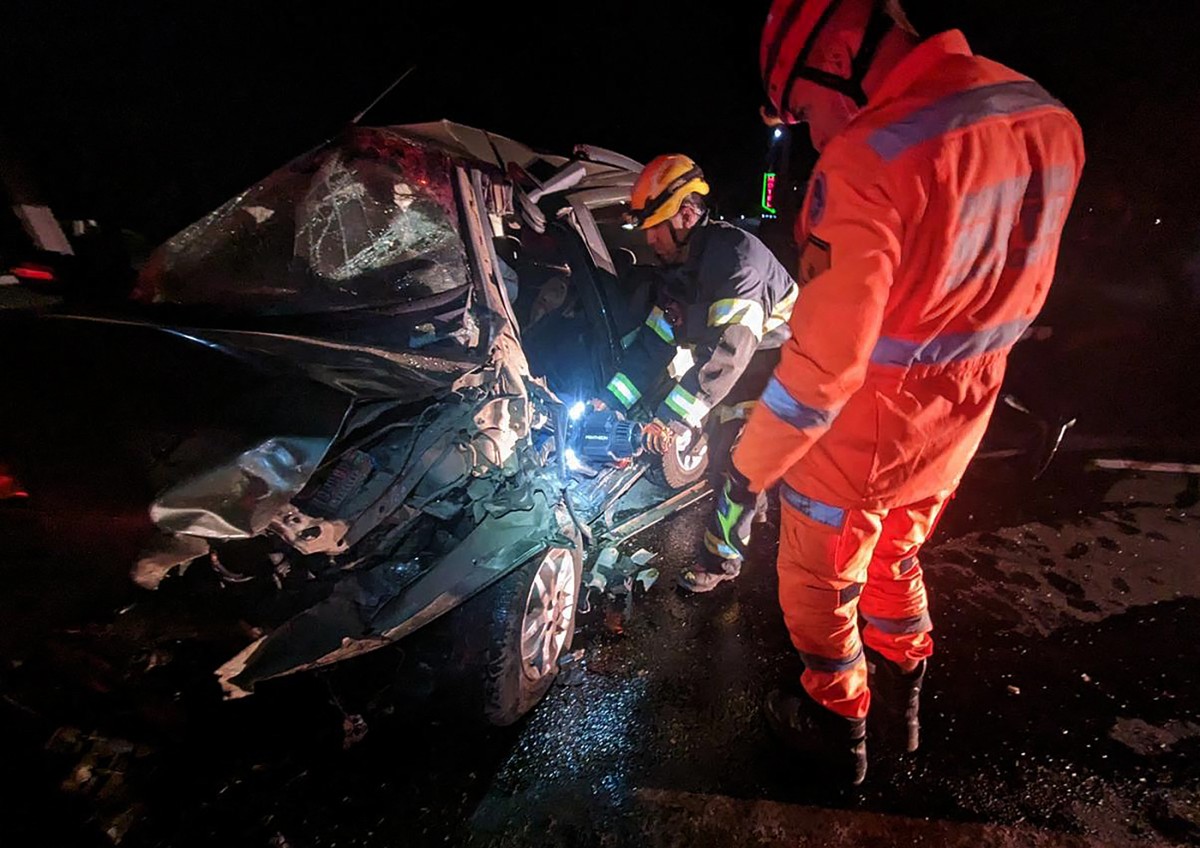 El choque ocurrió la noche del domingo, cuando un automóvil con cinco pasajeros “chocó frontalmente con una motocicleta con dos ocupantes” y con un tercer vehículo en una carretera del municipio de Guaxupé, según un boletín de los bomberos.