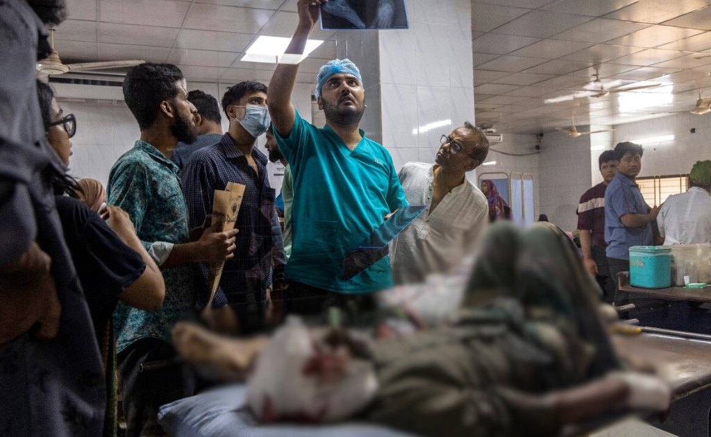 Al menos cinco personas murieron y unas 100 resultaron heridas, entre ellas estudiantes universitarios y trabajadores de una fábrica, indicó el jefe del gobierno provisional, Muhammad Yunus, en un comunicado.