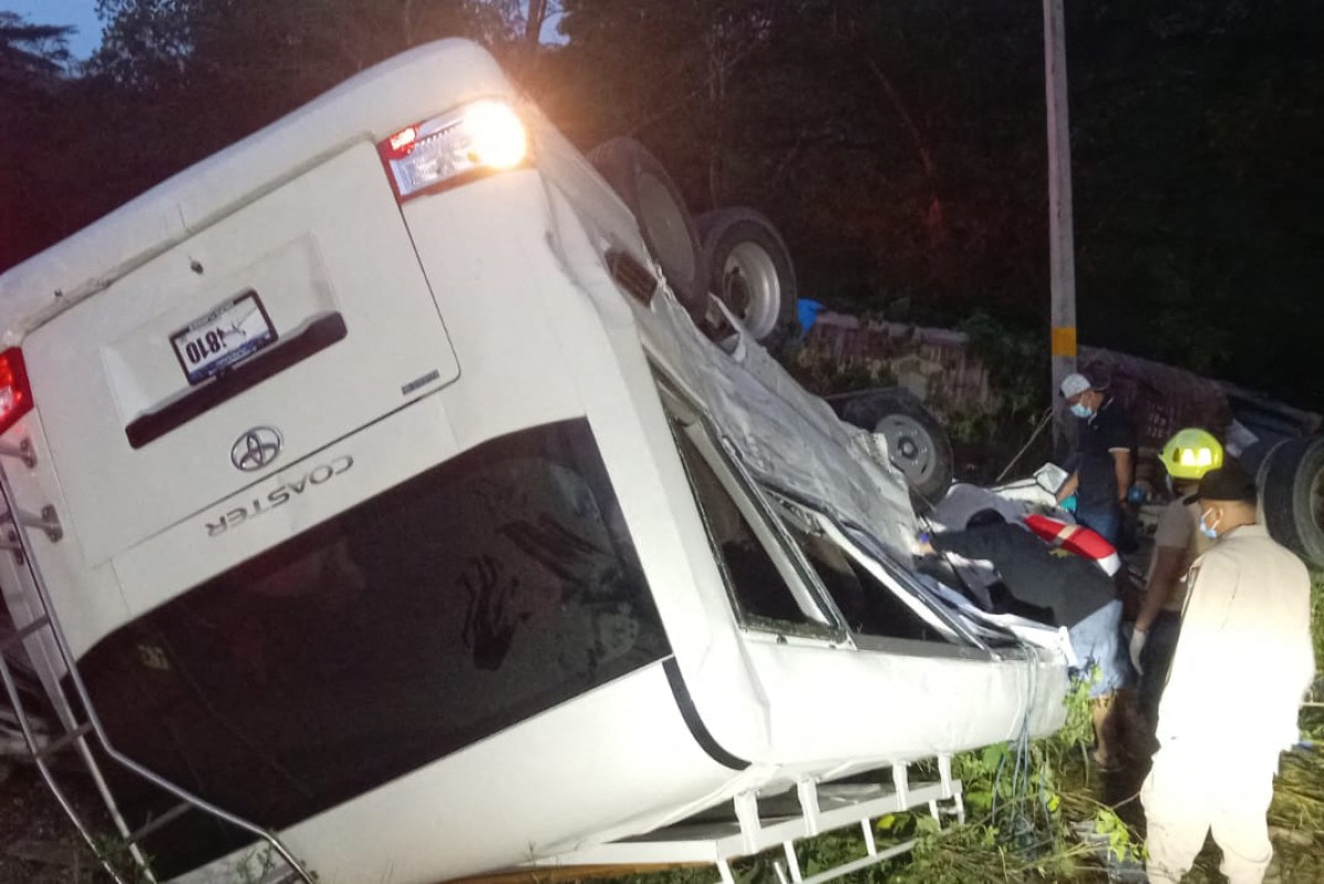 Los socorristas trataban en la noche de remover el camión y rescatar a pasajeros aún atrapados.