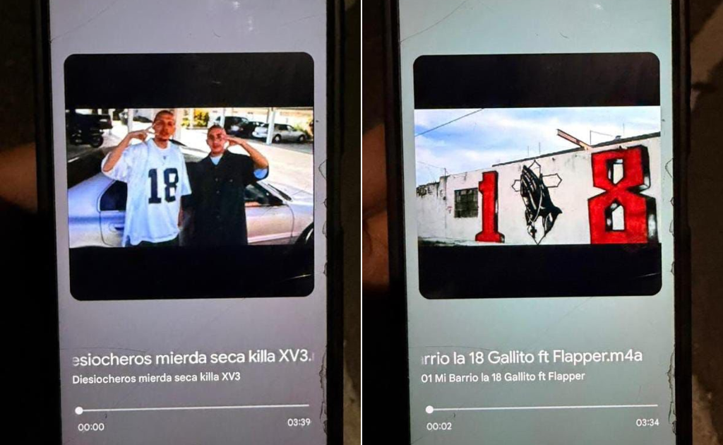 Evidencia encontrada en el celular del menor que lo vinculan con el grupo terrorista Barrio 18S (Foto vía ministro Merino).