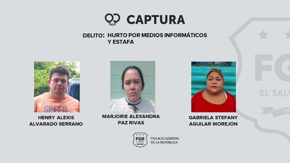 Treinta personas son señaladas por la Fiscalía General de la República (FGR) de estar vinculadas en diversos delitos como estafas informáticas, hurto y homicidio agravado tentado. Junto a la Policía Nacional Civil (PNC) se ejecutaron detenciones esta mañana en diferentes puntos del país.