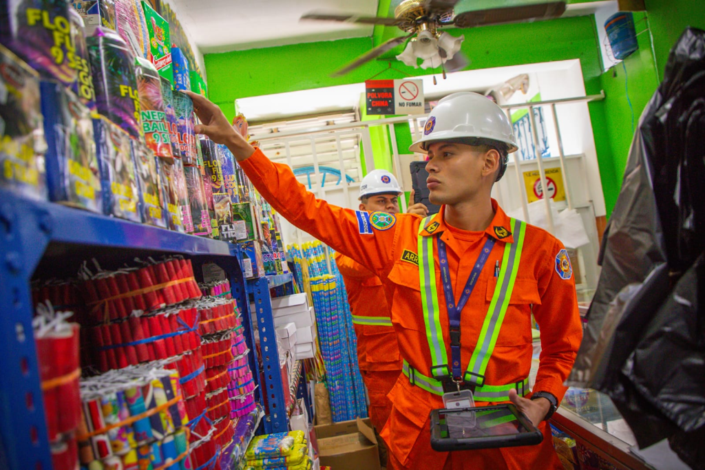Inspectores de Cuepo de Bomberos verifican puestos de ventas de pólvora (Foto vía Bomberos).