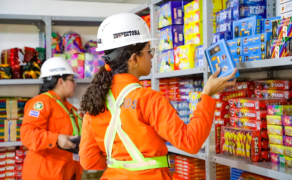 Inspectores de Cuepo de Bomberos verifican puestos de ventas de pólvora (Foto vía Bomberos).