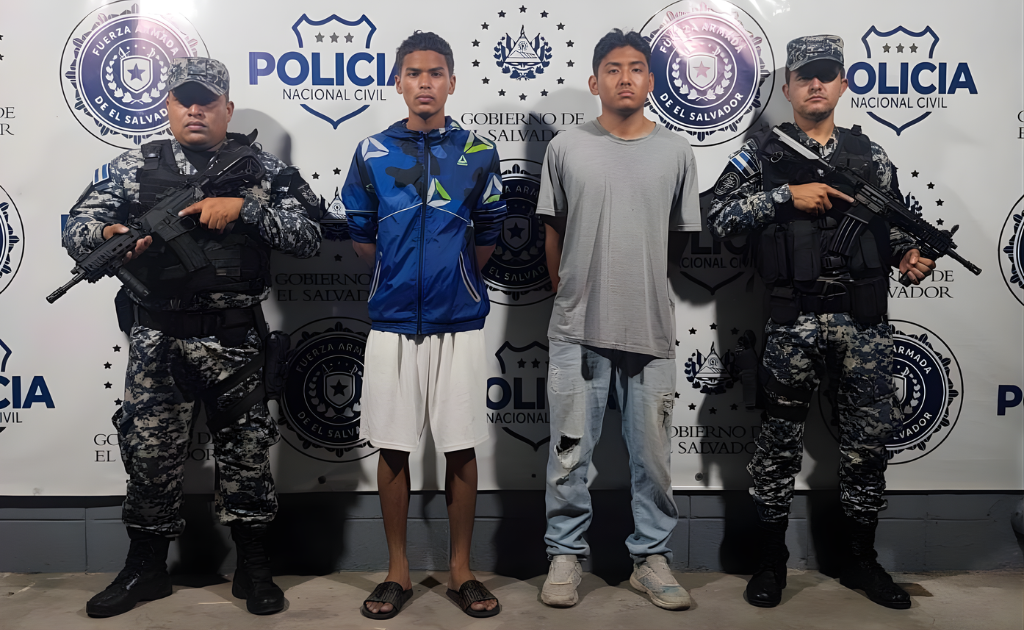 Como resultado de estas acciones, los agentes lograron ubicar a los presuntos responsables en la comunidad Lomas del Río, donde fueron intervenidos y posteriormente capturados. La PNC identificó a los detenidos como Andy Alejandro Castro Chávez y Christian Geovanny Méndez Mancía, ambos de 18 años de edad.