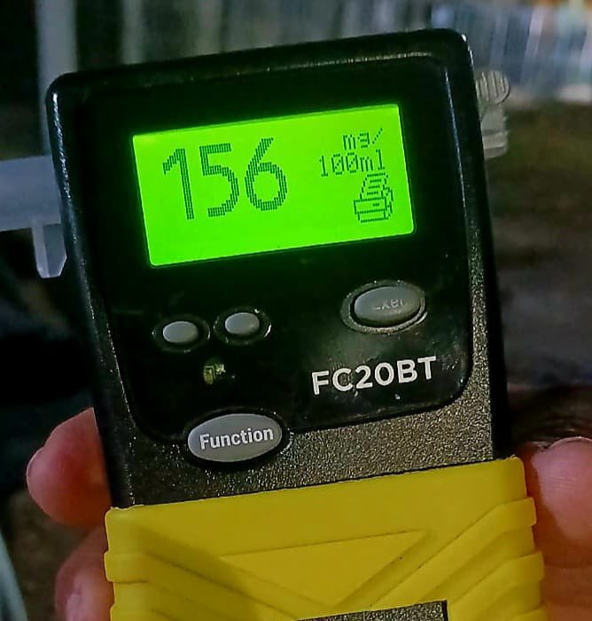 De acuerdo con el reporte policial, los agentes encontraron al detenido manipulando un arma de fuego mientras se encontraba en evidente estado de ebriedad. Durante la intervención, se procedió a realizarle la prueba de alcotest, la cual arrojó un resultado de 156°, confirmando que se encontraba bajo los efectos del alcohol al momento de cometer los hechos.