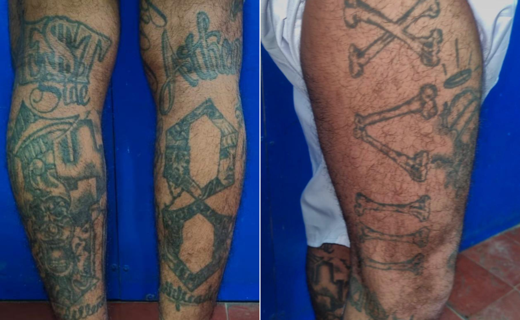 El detenido tiene múltiples tatuajes alusivos a su pandilla, los cuales refuerzan su vínculo con dicha estructura criminal. Al proceso judicial en su contra se le sumará el delito de agrupaciones ilícitas.