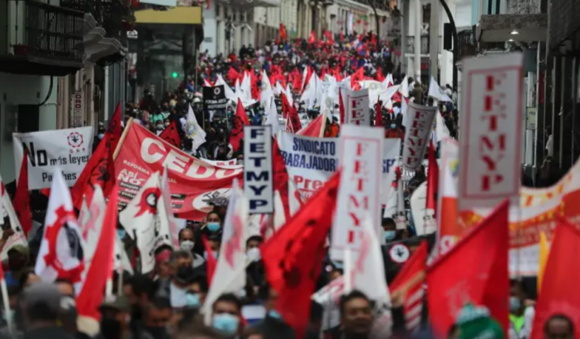 Ver más Miles de ecuatorianos protestan contra reforma laboral y recortes sociales en Quito.