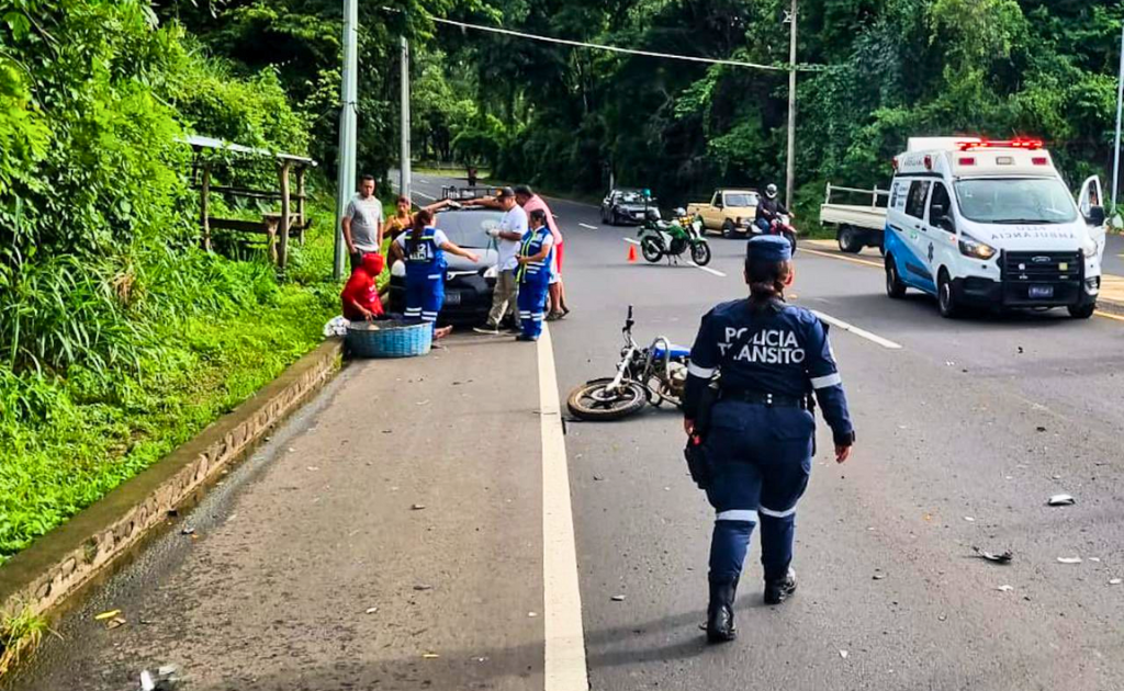 Dos motociclistas resultaron lesionados esta mañana en un accidente registrado en el kilómetro 49 de la carretera que conecta Santa Ana con San Salvador, en el sector de El Congo.