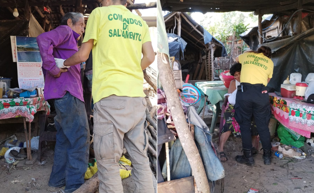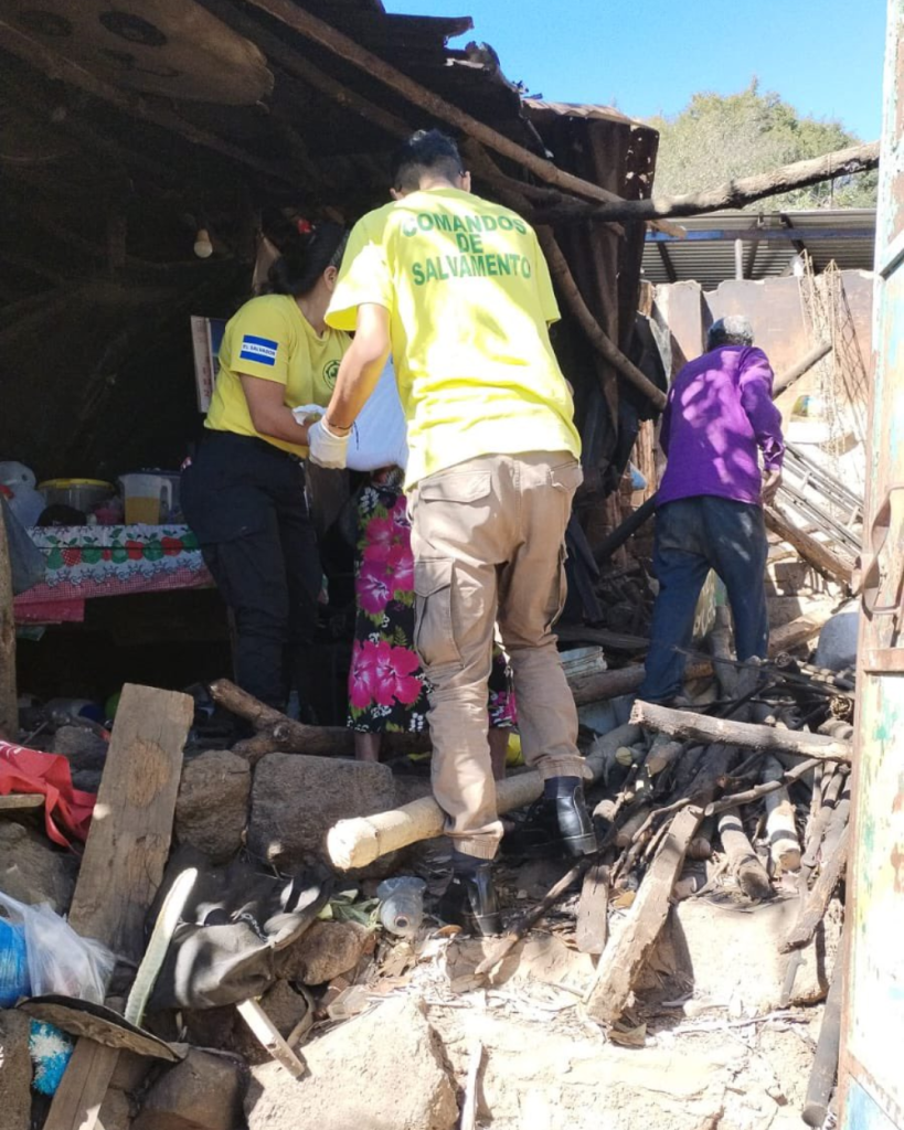 Comandos de Salvamento brinda primeros auxilios a dos asultos mayores lesionados tras el colapso de su vivienda (Foto vía Comando de Salvamento).