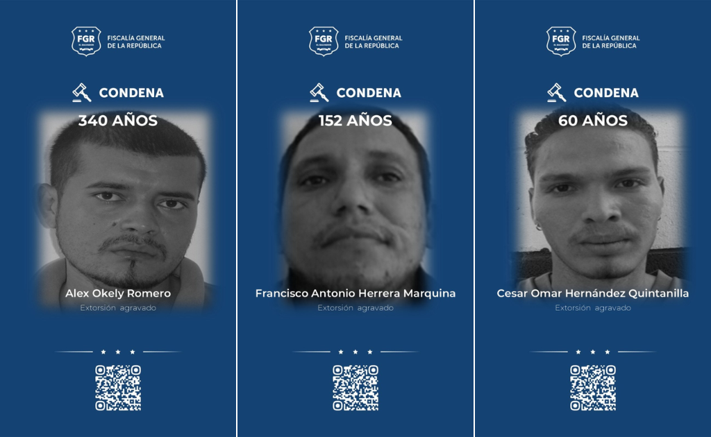 La Fiscalía General de la República (FGR) informó que varios pandilleros de la MS-13 recibieron condenas de hasta 340 años de prisión, tras ser hallados culpables de una serie de delitos cometidos contra comerciantes en San Miguel.
