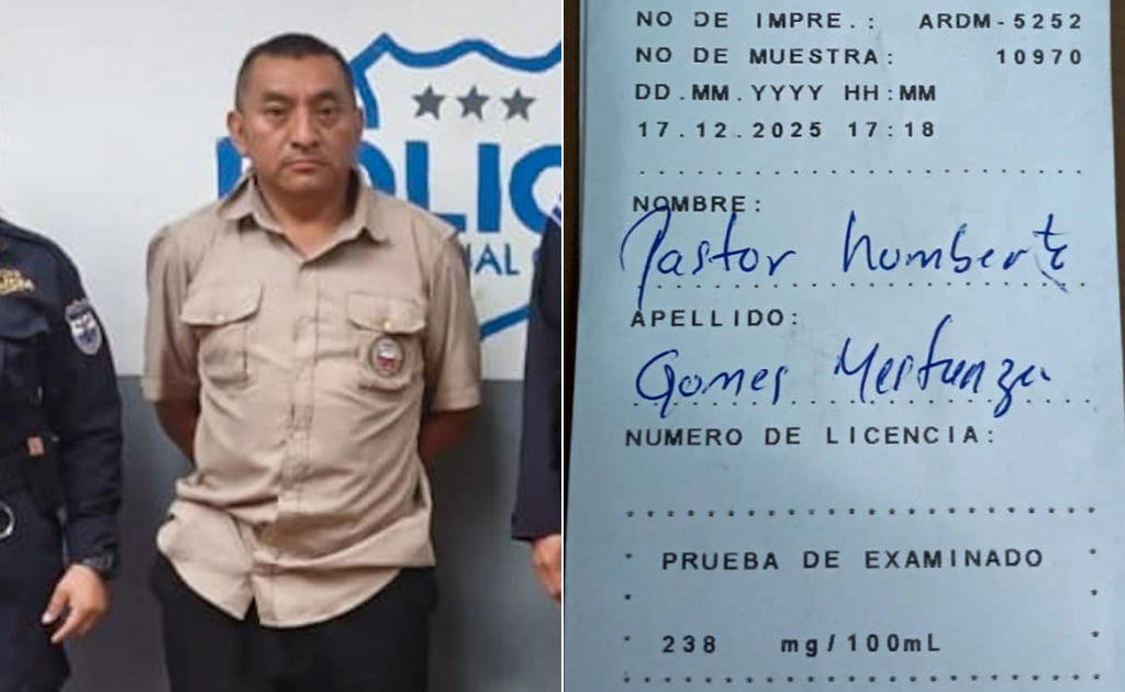 Según el reporte policial, uno de los capturados es Pastor Humberto Gómez Mestanza, quien registró 238° de alcohol en aire espirado. El sujeto fue intervenido mientras conducía un autobús de la ruta 30B, realizando maniobras imprudentes sobre la calle antigua a Soyapango, en sentido de oriente a poniente, en el distrito de Ciudad Delgado, San Salvador Centro. La PNC destacó que este tipo de conductas representan un alto peligro debido a la cantidad de pasajeros que utilizan este transporte colectivo.