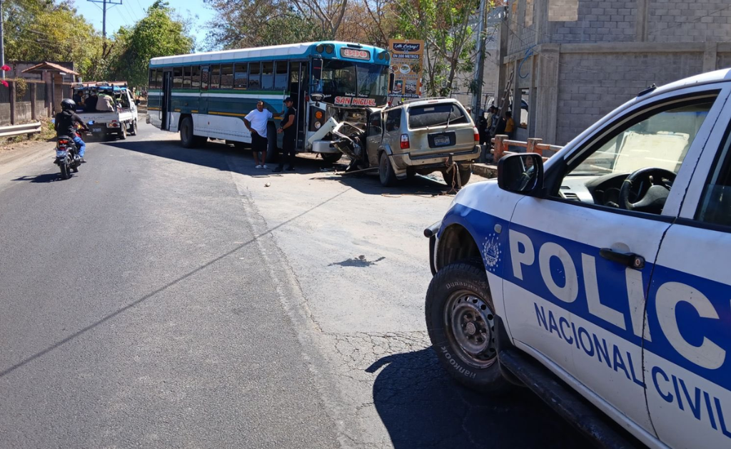 Un aparatoso accidente de tránsito se registró en el kilómetro 157 de la carretera Ruta Militar, en el sector del barrio San Sebastián, en Jocoro, Morazán Sur, donde un autobús de la ruta 390 colisionó con un vehículo particular. El hecho generó alarma entre residentes y conductores que circulaban por la zona, quienes alertaron a las autoridades sobre lo ocurrido. La información fue confirmada por la Policía Nacional Civil (PNC).
