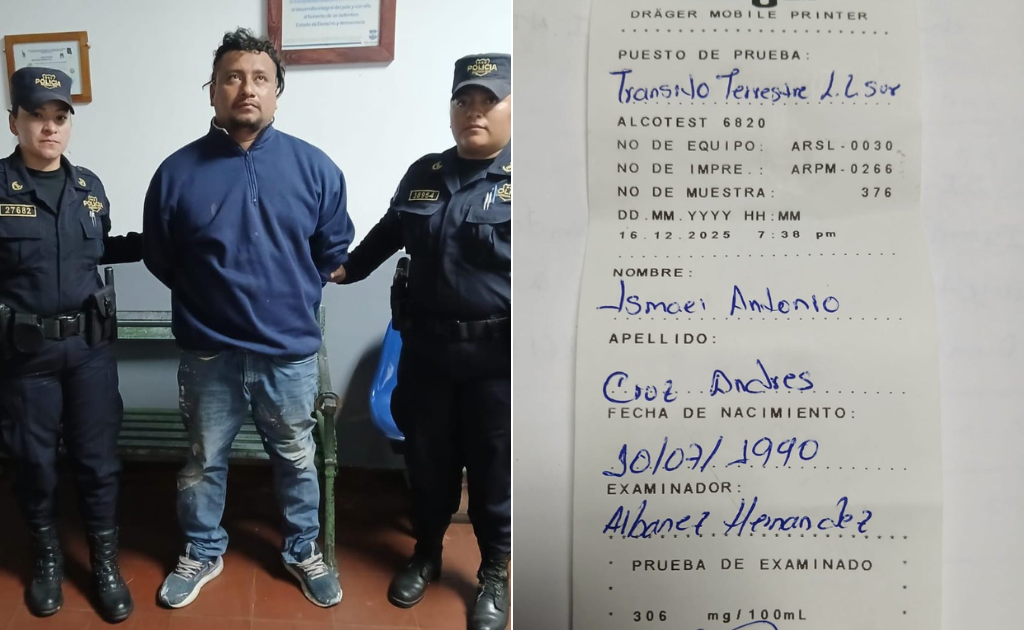 La Policía Nacional Civil (PNC) informó sobre la captura de dos conductores peligrosos en distintos puntos del país, como parte de los controles viales y acciones para prevenir accidentes de tránsito provocados por el consumo de alcohol. Las detenciones se realizaron tras verificar que ambos sujetos conducían en condiciones que ponían en riesgo la vida de otras personas.