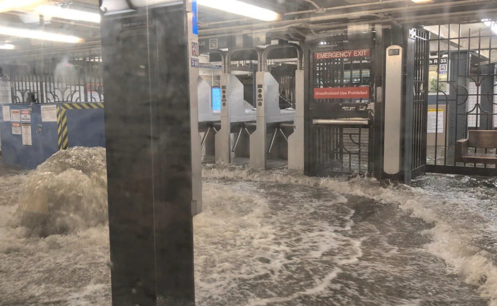 En el centro de Manhattan, se informó que decenas de pasajeros quedaron atrapados en un tren cuando el agua inundó la estación de la calle 28.