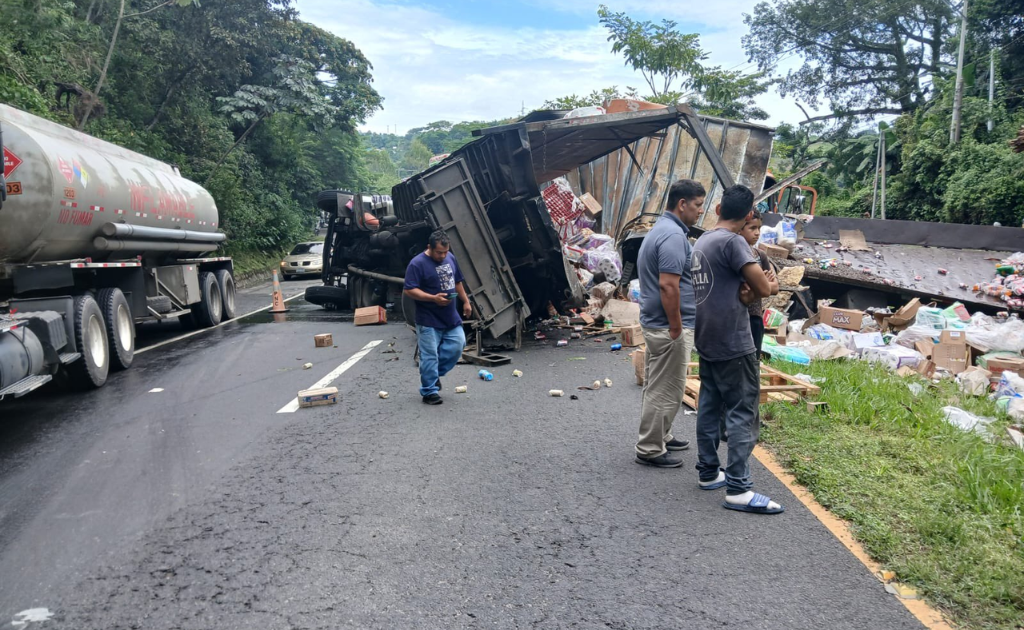 Falla en frenos de un camión provocó choque entre una rastra, dos camiones y un vehículo particular en San Vicente Norte