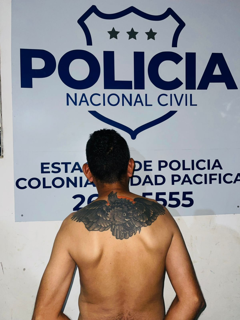 La espalda pertenece a César Muñoz Rivera, pandillero de la MS13 capturado por las autoridades (Foto vía PNC).