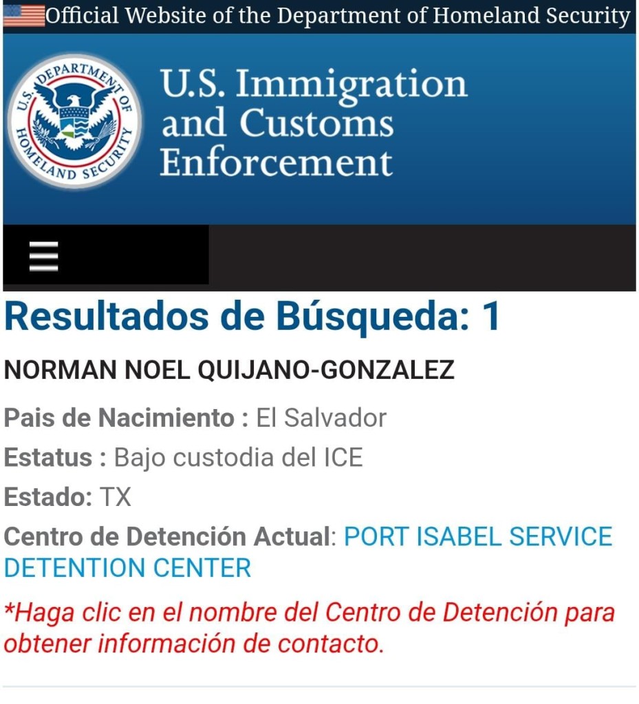 Detalles de la detención de Quijano en el sitio web de ICE.