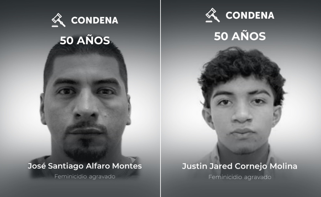 La Fiscalía General de la República (FGR) confirmó que José Alfaro Montes y Justin Cornejo Molina, miembros de la pandilla MS-13, fueron condenados a 50 años de prisión por el delito de feminicidio agravado.