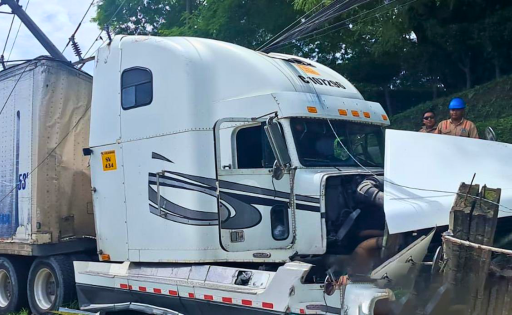 De acuerdo con la Policía Nacional Civil (PNC), una rastra invadió el carril contrario y se estrelló contra el muro perimetral del camposanto, provocando daños estructurales y derribando varios cables del tendido eléctrico y de telecomunicaciones.
