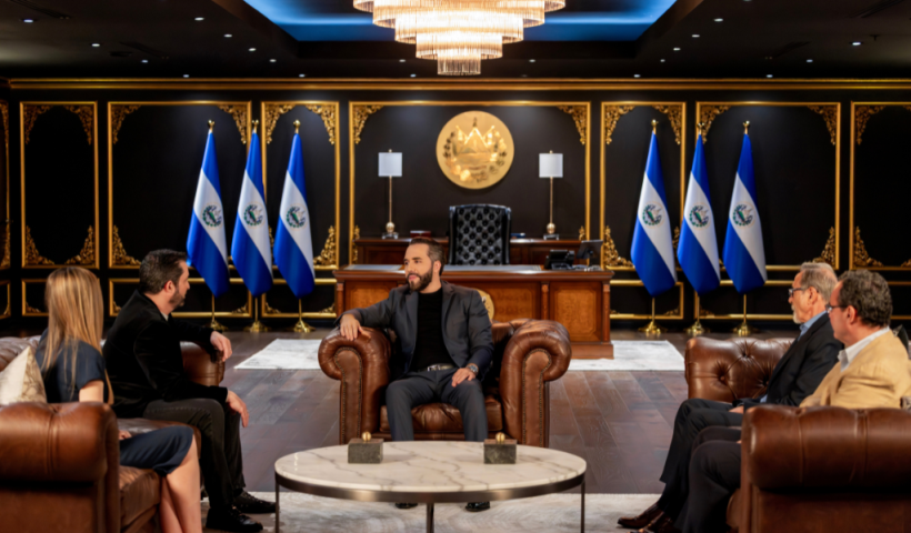 El presidente de la República, Nayib Bukele, junto a representantes de Google Cloud, el Banco de Desarrollo de América Latina (CAF) y especialistas internacionales en…