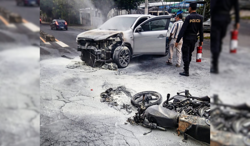 Ver más Un automóvil y una motocicleta en llamas tras colisionar en el bulevar San BartoloDos vehículos incendiados esta mañana en distintos puntos del país