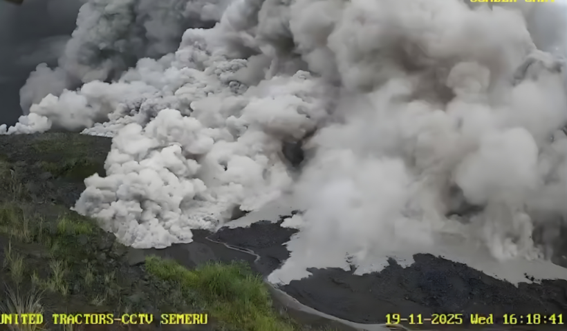 AFP Un volcán en la isla principal de Java, Indonesia, entró en erupción el miércoles, lanzando ceniza y gas a varios kilómetros de altura y…