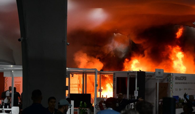 AFP Un incendio quemó este jueves parte del recinto donde se celebra la COP30 en Belém, Brasil, lo que obligó a evacuar el lugar y…