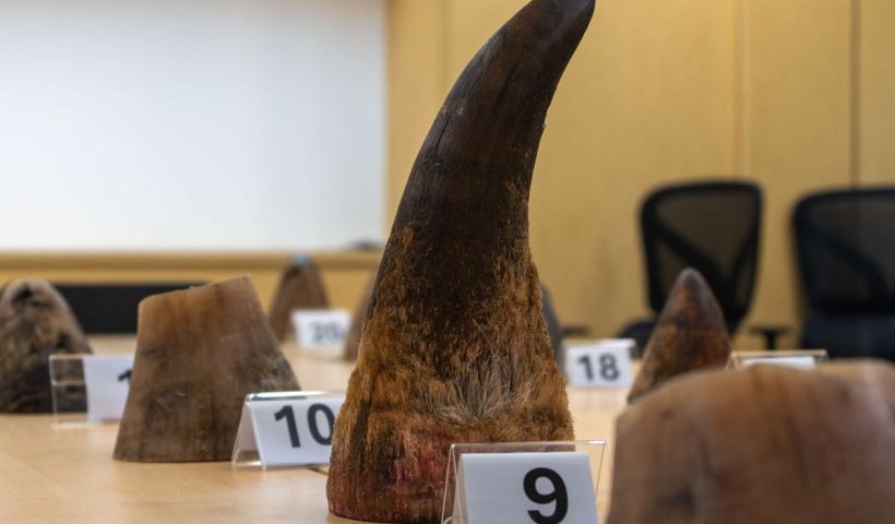 AFP Singapur confiscó cuernos de rinoceronte y otras partes de animales valuados en más de 800.000 dólares, ocultos en un cargamento aéreo con destino a…