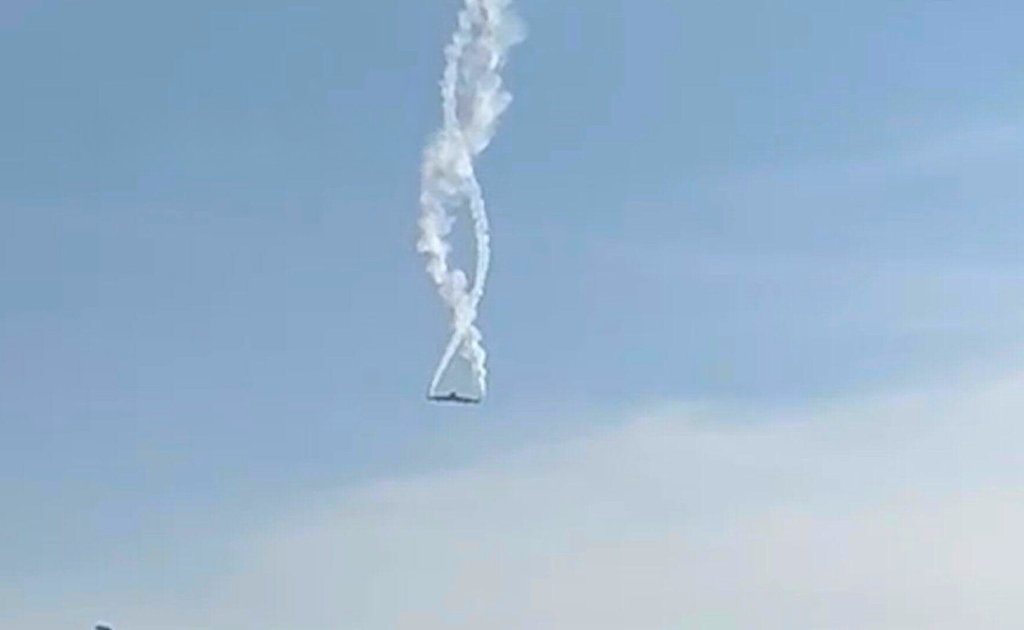 Dos videos tomados desde diferentes lugares muestran la misma aeronave cayendo en picado y dejando una estela de humo a su paso, antes de estrellarse a lo lejos.
